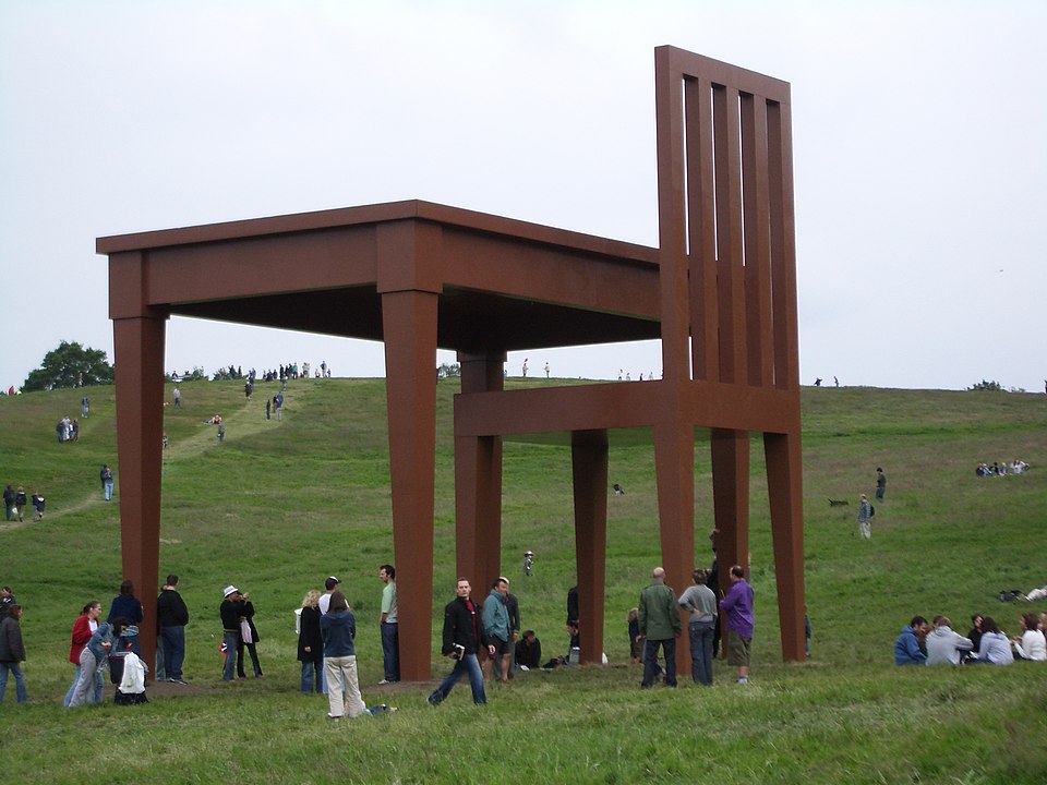 “The Writer” is a work by Italian sculptor Giancarlo Neri. It consists of a nine-meter-tall table and chair, crafted from steel covered in wood. The artist himself describes the piece as a tribute to writer’s block. It’s not the largest chair in the world; the largest stands in Alabama and is 10 meters tall.