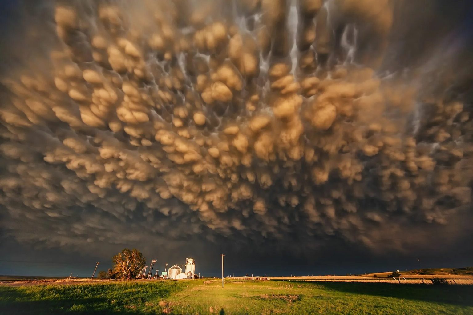 Mammatus clouds (from the Latin word “mamma” meaning “udder”) are not a distinct cloud species, but rather a rare feature, according to a complex scientific cloud classification system. Their appearance is attributed to a host of physical causes, but in general, they often serve as harbingers of a storm, and pilots are advised to avoid them.